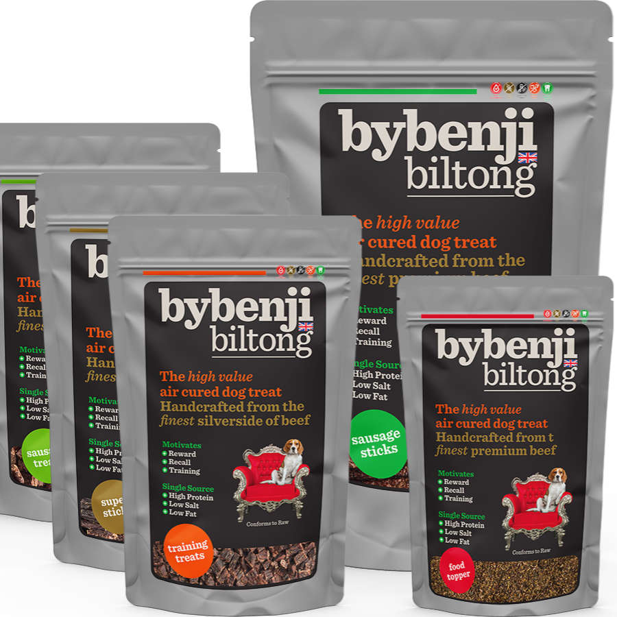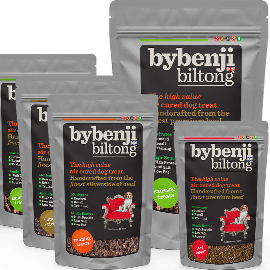 With a variety of bag sized and pocket pouches to decant your larger bags into, this is the ultimate in treat time packages. All our products can be frozen pre or post opening and all our bags are reusable and resealable, the combination of bag sizes means that every occasion from walking to training is catered for.
