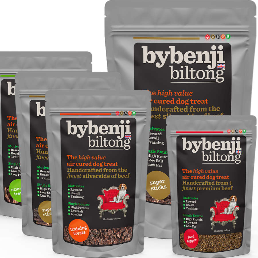 All our products can be frozen pre or post opening and all our bags are reusable and resealable, the combination of bag sizes means that every occasion from walking to training is catered for. Benefits of a bundle are not only for your dog, the saving made is comparable with ordering an extra bag, no better way to avert that Biltong emergency! Multi dog households will enjoy the variety , and why not share the experience by sending as a gift. Bundles of biltong means bundle of treat time fun, as no gathering is complete without a biltong treat! |